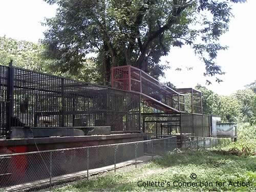 in this zoo). Their enclosures are concrete and steel bars, and